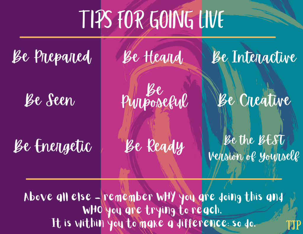 As you know, the more I learn is the more I share so I decided to put together my top tips for going live/recording videos and share them with you. Mind you, this is in no way only for educators. These tips can be applied to priests, fitness instructors, insurance agents, medical professionals, artisans and any other person involved in any kind of recording, streaming or online information exchange. It is by no means exhaustive and is certainly not the most technically sound or professional list. I am not a recording specialist/videographer of any kind. I am an educator who has had to pivot and adjust and I continue to embrace that journey every day.